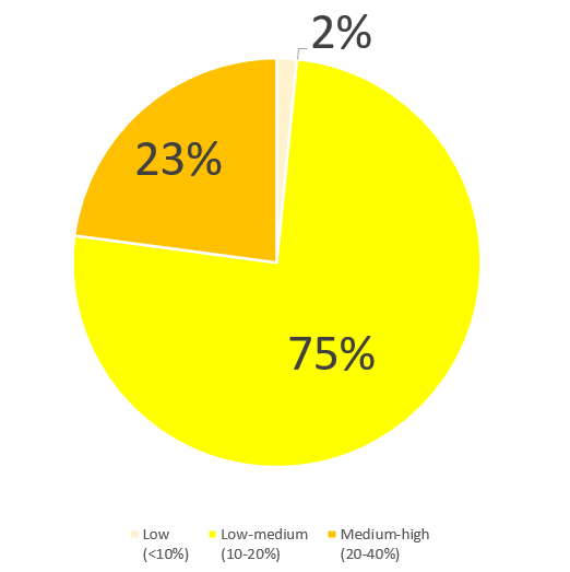 2025年9月時点で再評価を実施したところ、水資源リスクが相対的に高い地域としてはタイの拠点があるものの、水の使用量の多い拠点ではなく、全体の約0.3%であり、リスクが中~高の地域は全体の約23%となっています。